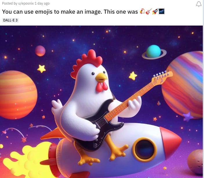 One last DALL-E 3 takeaway, for those who struggle with the effort of forming coherent sentences, it can just follow emoji prompts. The final death knell for pesky words!