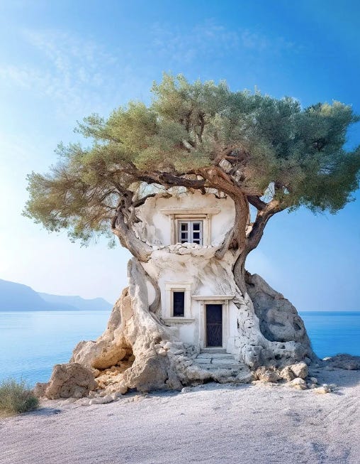 Ben Myhre made the above image using “using a blend of Midjourney AI, Photoshop and Topaz” after a holiday in Greece. It’s part of a consistent theme, fantastical home architecture created with AI tools, that’s bagged him half a million Instagram followers. Which is all great. And he would feature in The Good Stuff regardless. But the reason I’m all in on the AI work of Ben, and others following a similar theme, is that it’s caused a schism in the odd world of Nice Buildings and Places aggregator social media accounts. So when Tiny House Perfect (735,000 followers, posting ‘Daily Inspiring Tiny House Content’) posts Ben’s image, with no mention that it’s AI-generated, all hell breaks loose in the comments. The AI truthers want full disclosure (“All our moms are going to be sending this around thinking it’s real” is my favourite quote). Said moms enthuse about the image, happily oblivious that it’s fake. Others appreciate it’s fake, but don’t care because they just want inspiring tiny house content, daily. The same debate is happening over on the ‘World of Luxury Travel’ Facebook page and hundreds of similar Random Nice Things aggregator accounts. It’s all beautifully low stakes, and I’m all in.